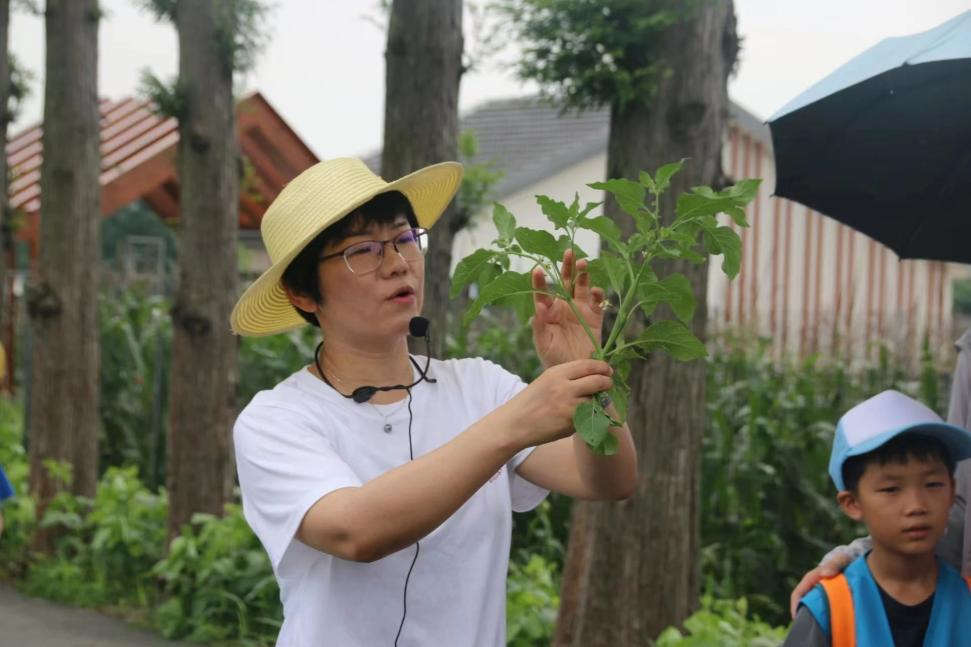 7月8日,实践团一行人协同浙江省科技馆研学的小朋友们来到了杭州市临平区戚家桥村的航天育种紫色产业园区。