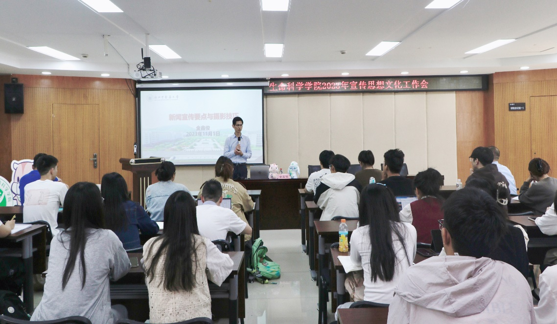 会议还邀请到了校宣传部新闻宣传科金鑫俊科长为宣传员们带来了《新闻宣传要点与摄影技巧》专题讲座。金老师结合生科院和公司的成功宣传案例,从“为什么要宣传、宣传什么内容、怎样做好宣传”和撰稿的注意事项以及拍摄的技巧等方面,为大家带来了一堂实操性很强的专业培训。他指出,宣传工作者要做到提前谋划、主动出击、捕捉亮点、及时报道。师生们纷纷表示受益匪浅,切实领略了摄影的魅力,对摄影知识有了更深层次的了解。今后将积极挖掘宣传重点、亮点、热点,增强新闻宣传的说服力、感染力,充分展现生科风采。