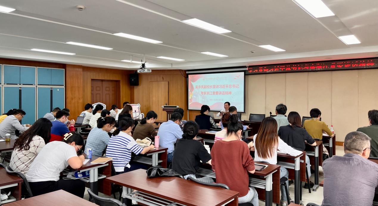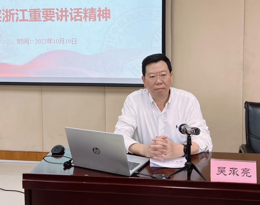 吴董事长作了题为《循迹溯源 学思践悟 学习贯彻习近平总书记考察浙江重要讲话精神》的宣讲报告。他带领教工党员一起重温习近平总书记考察浙江时的足迹,先后介绍了总书记来到金华、绍兴等地,深入农村、商贸市场、陈列馆、文化园区等调研指导的感人场景,感悟习近平总书记重要讲话精神。他指出,习近平总书记在考察浙江期间作出的重要指示、发表的重要讲话,思想深邃、高屋建瓴、视野宏阔,赋予了浙江“中国式现代化的先行者”的新定位和“谱写中国式现代化浙江新篇章”的新使命,又一次在关键节点上为浙江指路引航,对浙江奋进新征程作出了战略考量和战略定位。他强调,要深刻领会习近平总书记考察浙江的重大战略意义,深刻领会“八八战略”总纲领总方略的高度重要性,深刻领会习近平总书记对浙江发展的精准点题,深刻领会习近平总书记对浙江党员干部的谆谆嘱托教诲,把对习近平总书记的崇敬之心、感恩之情转化为坚定捍卫“两个确立”、坚决做到“两个维护”的思想自觉、政治自觉、行动自觉。