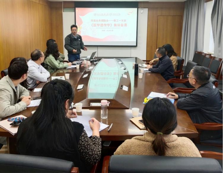 党员教师金波教授针对“课堂创新一流本科课程申报”工作进行汇报,着重强调云课堂、云班级等线上课堂的重要性,为年轻教师如何有效参与教改和一流课程建设理清了思路、指明了方向。党支部书记蒋福升副教授讲解了《医学遗传学》课程的教学目的和相关学科领域的新成就、新技术,进一步培养指导了两位年轻教师相关的备课工作。老党员、教研室主任卢德赵对两位教师试讲情况作了详细指导,并希望他们可以主动承担教研室的教学工作,积极带教员工,做到“教学”“科研”两手抓,围绕立德树人的根本任务为公司育人工作贡献力量。