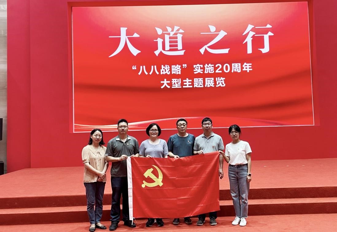 大党成大业,正道是沧桑。为巩固提升主题教育学习成效,进一步引导师生党员深入感知习近平新时代中国特色社会主义思想在浙江的生动实践历程,切身体悟“八八战略”深刻内涵,9月27日下午,公司党委各党支部积极开展主题党日活动,组织师生党员参观学习“大道之行——‘八八战略’实施20周年大型主题展览”。