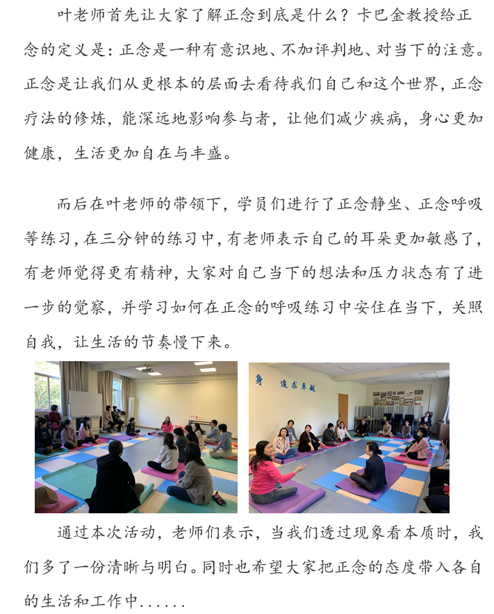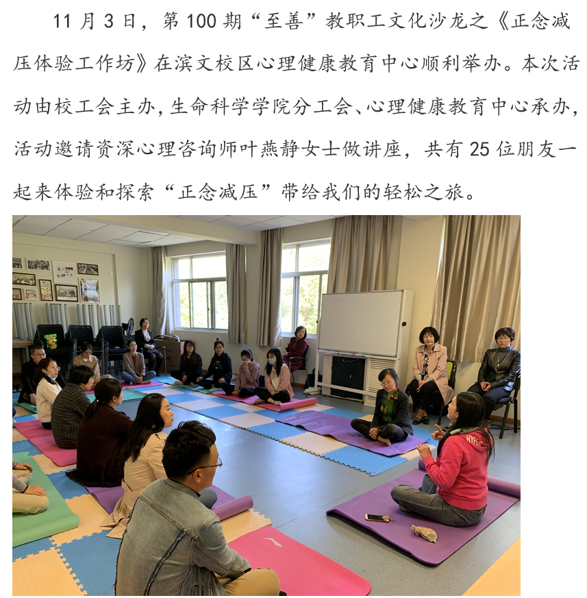 “至善”教职工文化沙龙第100期:正念减压体验工作坊