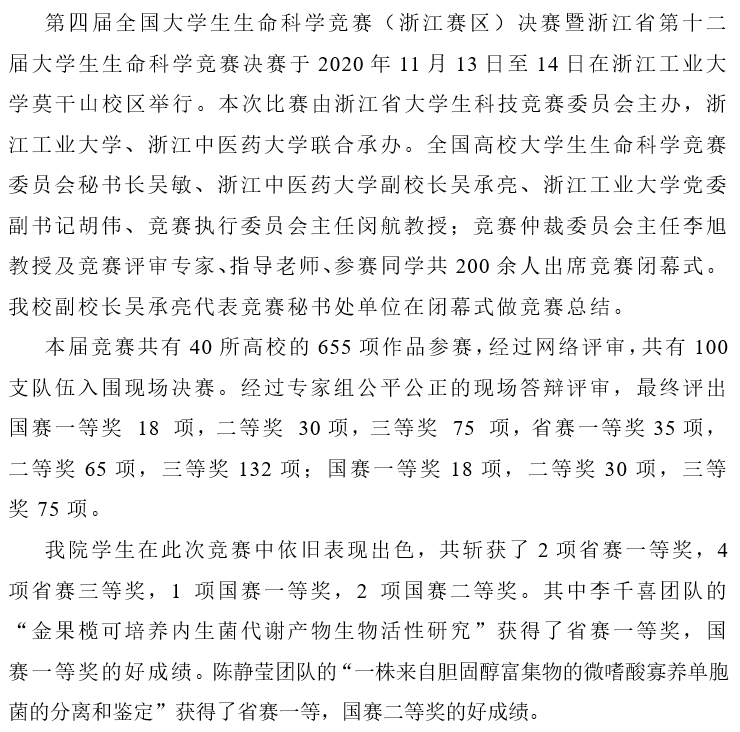 生科学子在浙江省第十二届老员工生命科学竞赛中再创佳绩