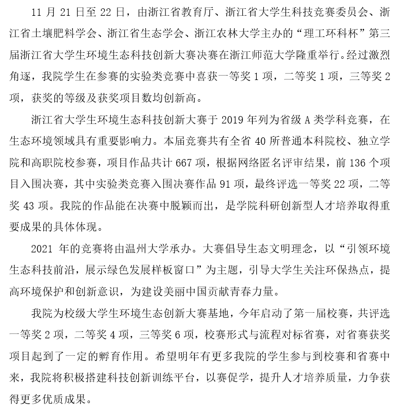 MK体育学子在第三届浙江省老员工环境生态科技创新大赛中喜获佳绩