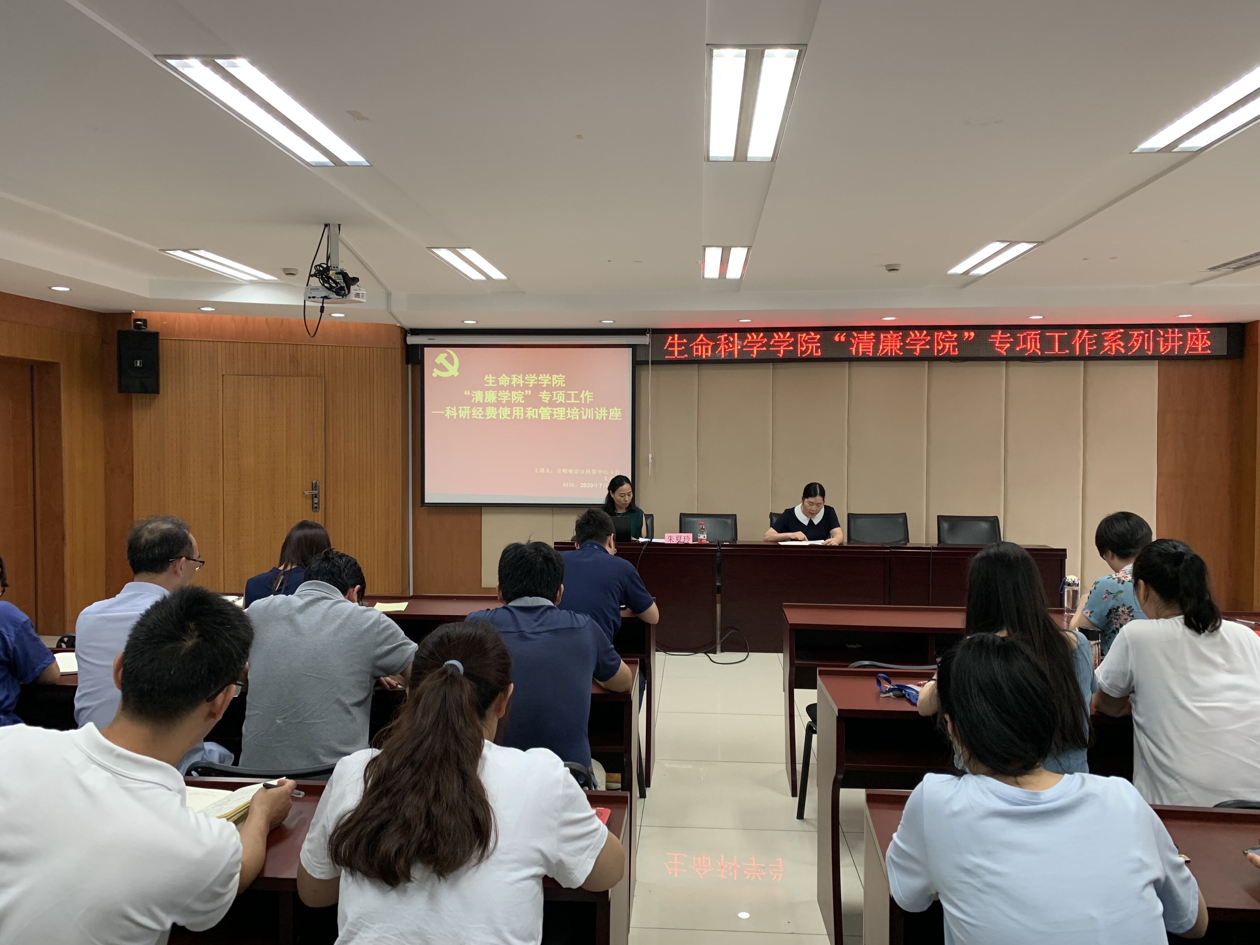 朱主任首先从《科研项目经费管理办法》《科研项目间接费用管理暂行办法》《涉企服务项目经费管理办法》入手,讲解了三个文件之间的关系,并对直接费用和间接费用等进行了说明。随后,针对生科院特点,重点讲解了测试化验加工费、劳务费、咨询费、差旅会议费等的报销注意事项和流程等。最后,对经费使用和管理过程中的特殊情况进行了说明和补充。通过此次讲座,全院教师加强了对科研经费使用流程和规范的认识,有助于更好地树立廉洁意识。