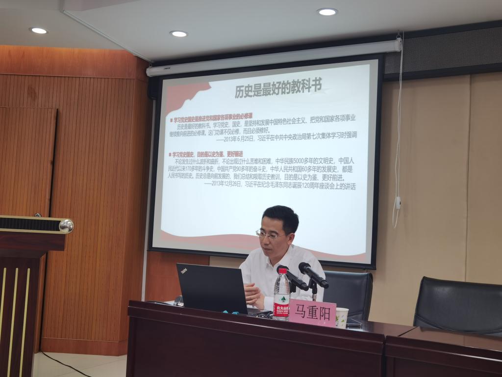 2021年5月8日下午,MK体育党委委员,党委宣传部部长马重阳副教授为公司师生党员代表作题为《铭记党史,不忘初心》的党史学习教育专题宣讲报告。报告会由公司党委王樱书记主持,公司院领导、科级干部、党支部书记和部分员工党员参加了现场学习。