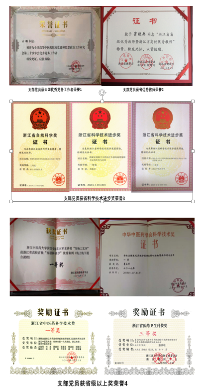 近年来,支部成员在党建、教书育人工作中成果显著,涌现了一批先进典范,如“全国高等中医药院校优秀党务工作者”、“第二届浙江省最受师生喜爱的书记”、浙江省优秀教师、MK体育先进工作者、优秀班主任等荣誉称号;支部创新特色活动“红色流动实验室”帮扶企业解决技术难题,办实事增收益,多次被《中国中医药报》、《学习强国》等新闻媒体宣传报道。