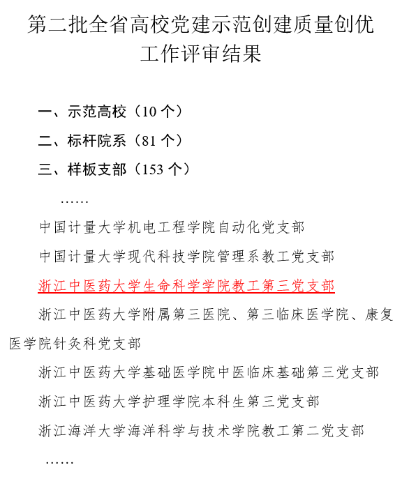近日,浙江省教育厅公示了第二批全省高公司党建示范创建质量创优工作评审名单,MK体育教工第三党支部入选“第二批全省高公司党建工作样板支部”公示名单。这是公司基层党支部首次入选省级项目,对公司党委和基层党支部建设具有极大的推进和鼓舞作用。