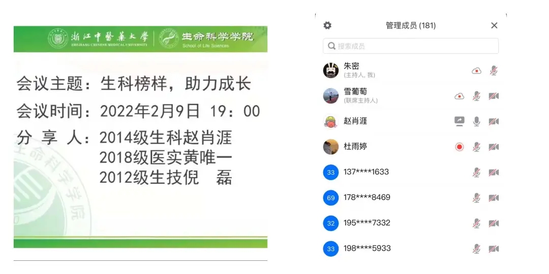 MK体育于2月9日19点线上开展了“生科榜样,助力成长”分享会。此次分享会邀请了2014级生物科学赵肖涯、2018级医学实验技术黄唯一、2012级生物技术倪磊三位优秀的同学,讲述他们的老员工活,分享他们学习、考研、就业的经历。分享会由学办主任孙提主持,全体学工干部、2021级员工和部分员工家长参加。