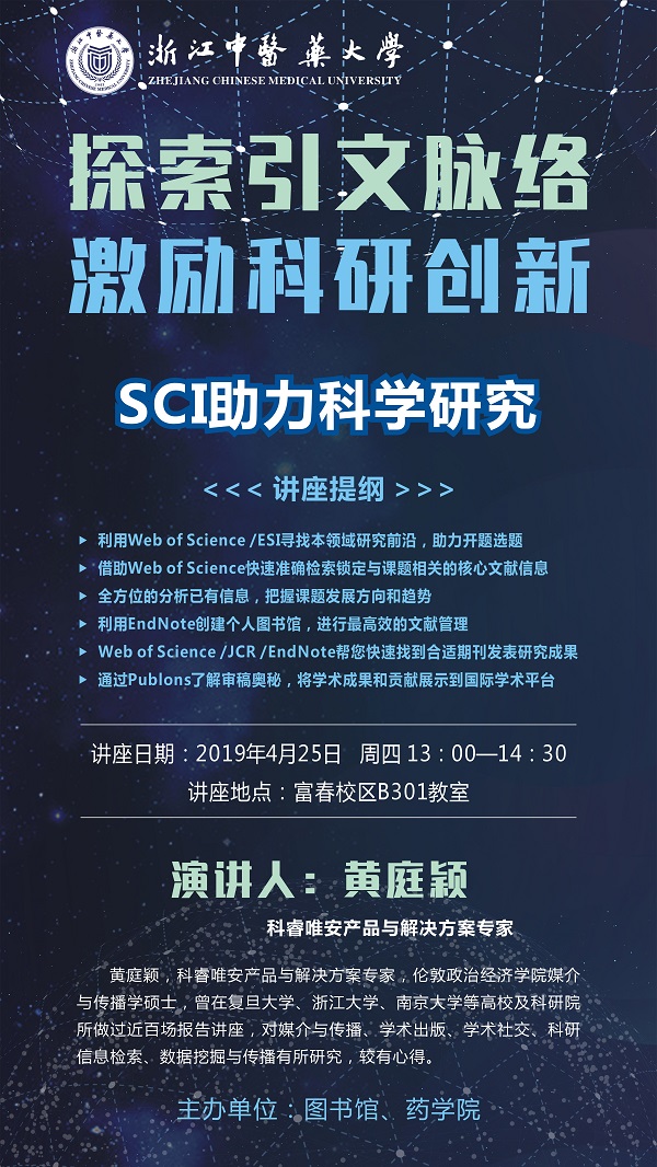 SCI讲座预告:“探索引文脉络,激励科研创新”——SCI助力科学研究